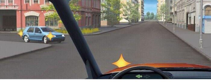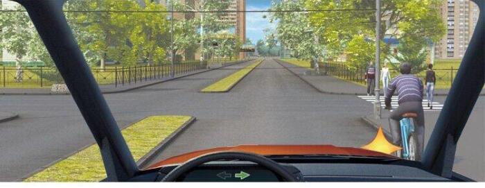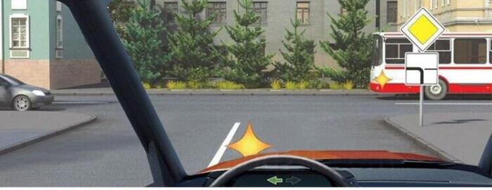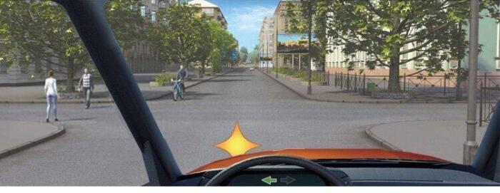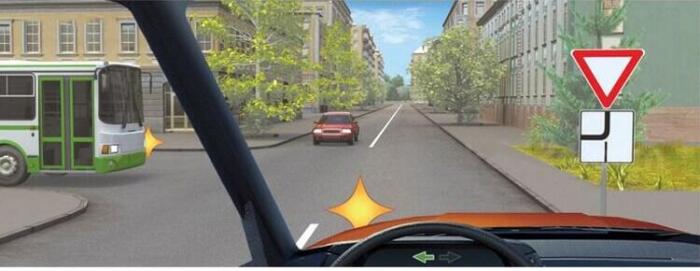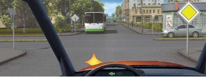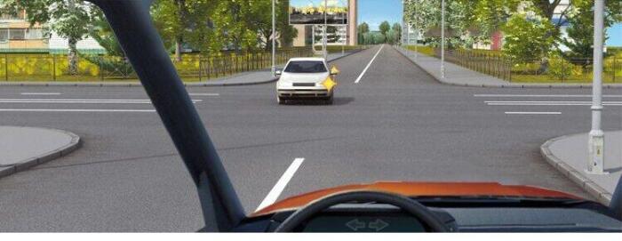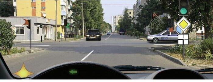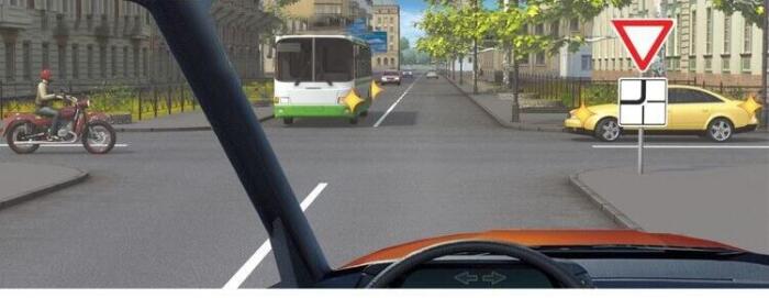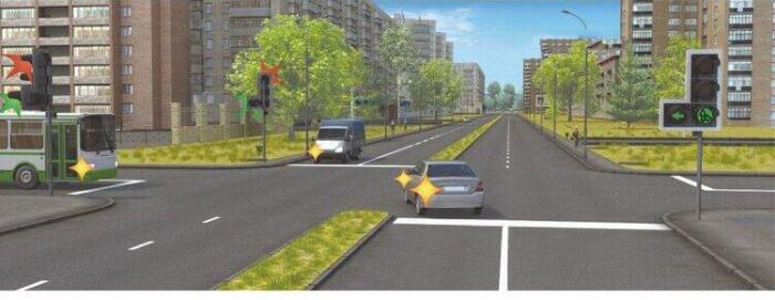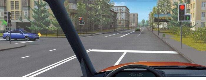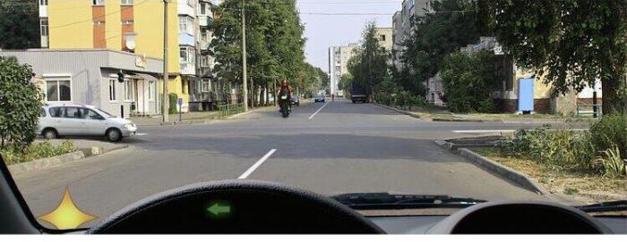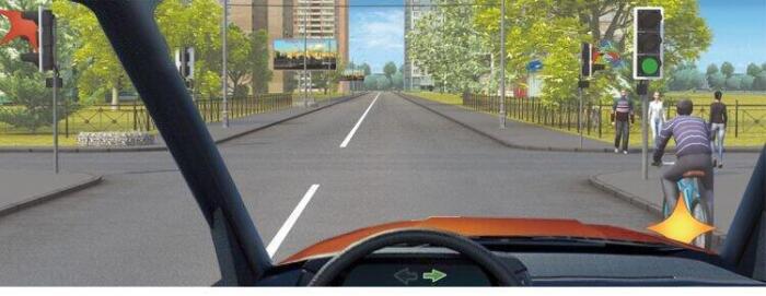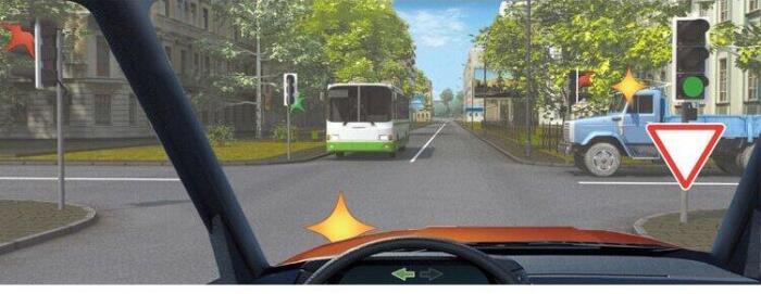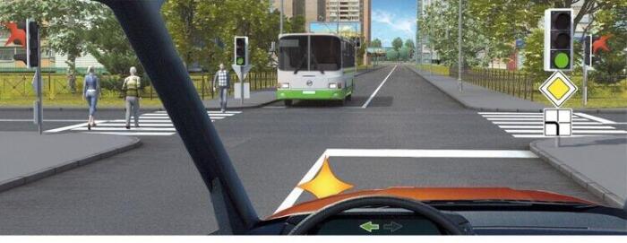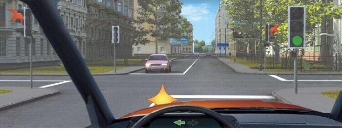 Вы намерены проехать перекресток в прямом направлении. Ваши действия?