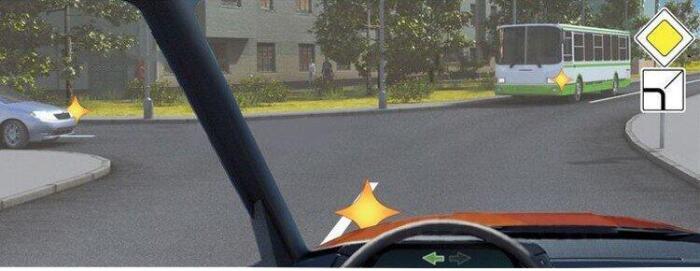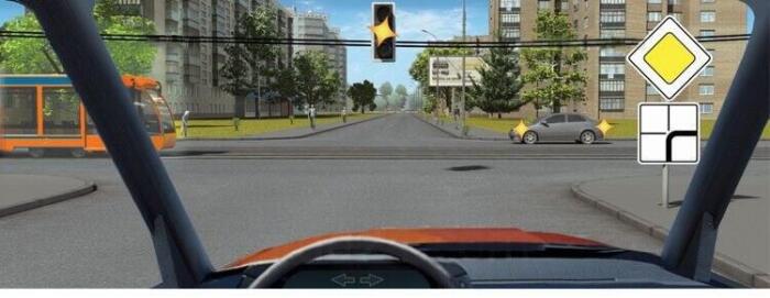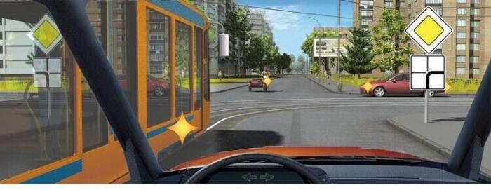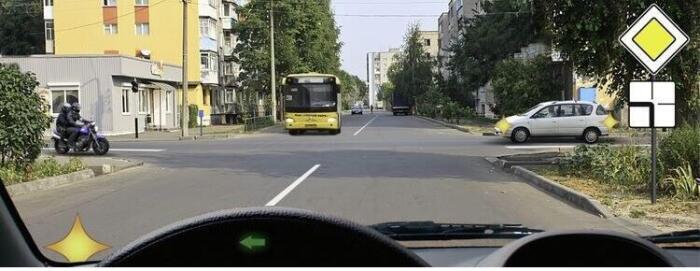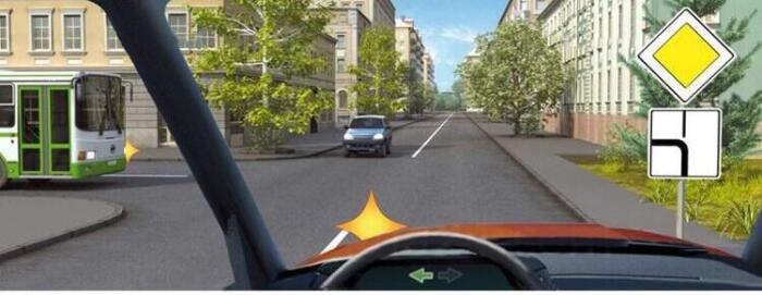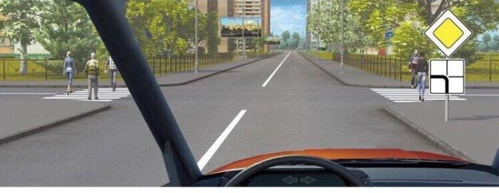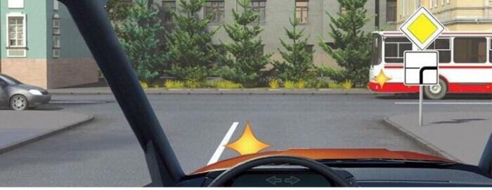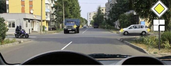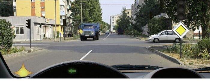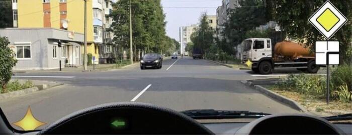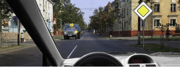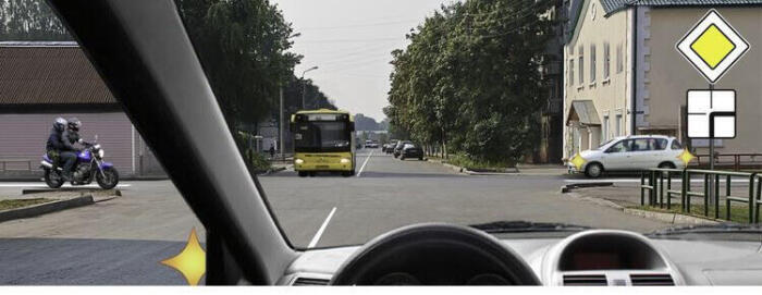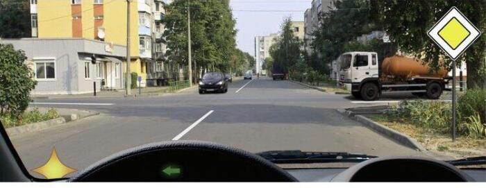 Проедете первым, руководствуясь знаком «Главная дорога»