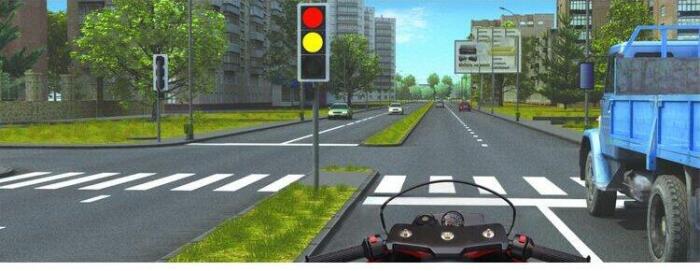 Вы намерены продолжить движение прямо. При желтом мигающем сигнале светофора следует: