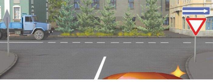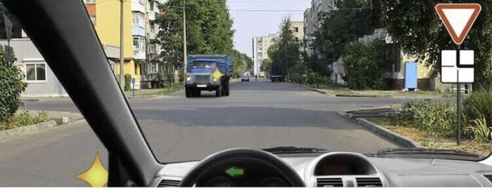 Проедете перекресток, уступив дорогу грузовому автомобилю