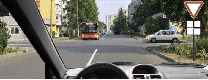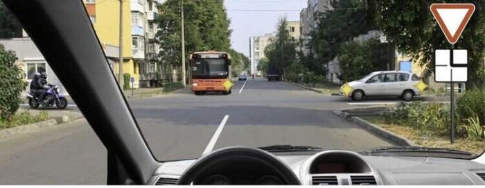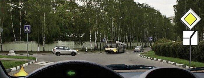 Кому Вы должны уступить дорогу при движении в прямом направлении?