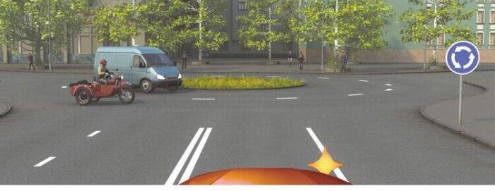 Как Вам следует поступить, двигаясь по перекрестку с круговым движением?