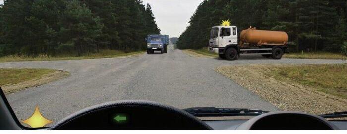 Уступить дорогу грузовому автомобилю, выезжающему с грунтовой дороги