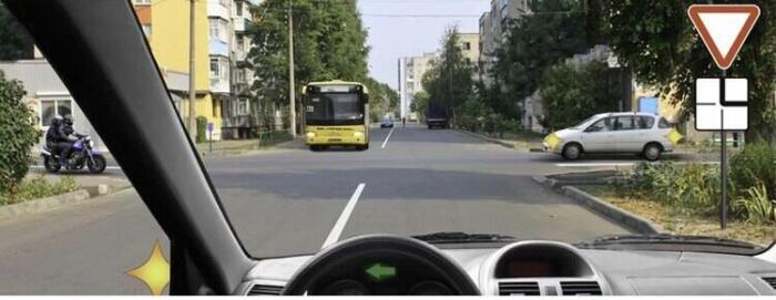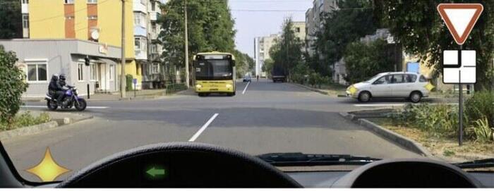 Выедете на перекрёсток и, уступив дорогу мотоциклу, завершите поворот