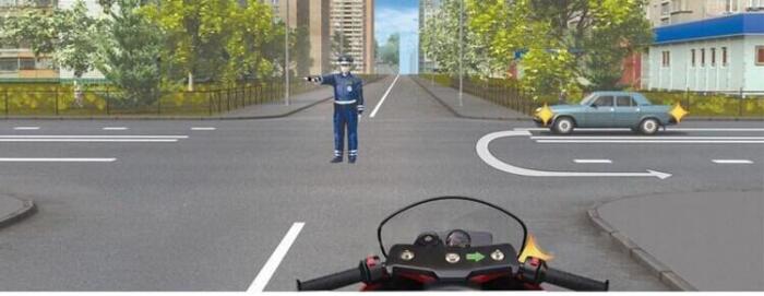 Остановиться у стоп-линии и дождаться сигнала регулировщика, разрешающего поворот