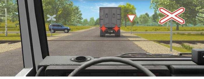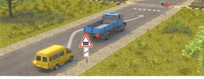 Разрешается, если между шлагбаумом и остановившимся грузовым автомобилем расстояние более 5 м
