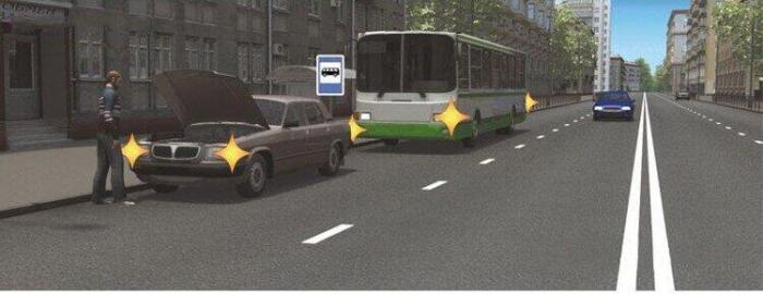 Должны уступить дорогу автобусу, начинающему движение от обозначенного места остановки