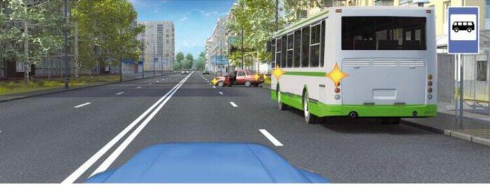 Как следует поступить водителю автобуса, отъезжающего от обозначенного места остановки?