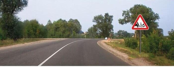 О приближении к участку дороги, где возможен выброс гравия (щебня) из под колес