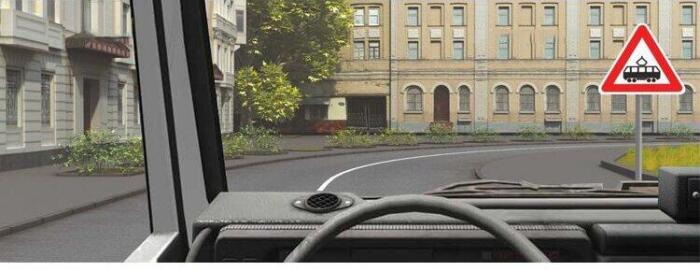 Предупреждает Вас о приближении к месту пересечения с трамвайной линией
