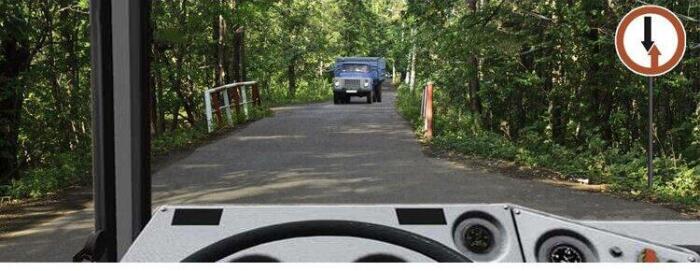 Обязывает Вас уступить дорогу встречному транспортному средству