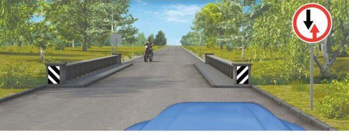 Разрешается ли Вам въехать на мост одновременно с водителем мотоцикла?
