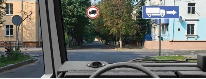 Вы управляете грузовым автомобилем с разрешенной максимальной массой более 3,5 т. В каком направлении Вам разрешено дальнейшее движение?