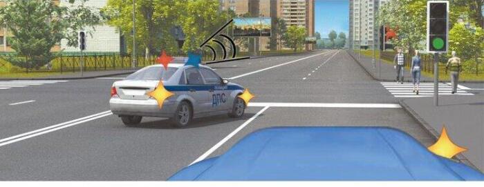 Если на автомобиле ДПС одновременно будут включены проблесковые маячки синего цвета и специальный звуковой сигнал