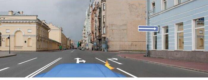 Разрешается ли Вам выполнить поворот направо по указанной траектории в данной ситуации?