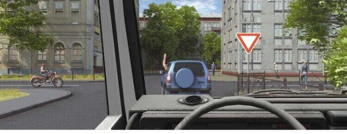 Снизить скорость, чтобы остановиться и уступить дорогу мотоциклу