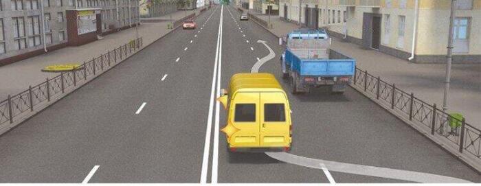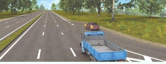 Можно, если при этом не будут созданы помехи грузовому автомобилю, движущемуся по левой полосе