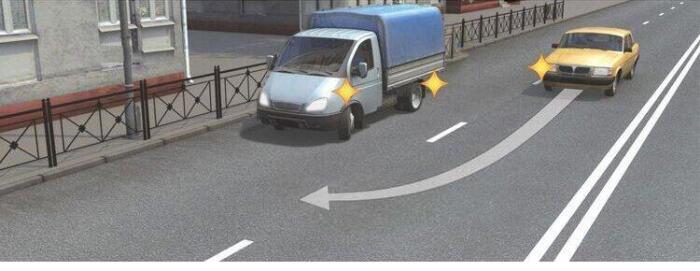 Убедиться в безопасности выполнения маневра, затем включить указатели левого поворота и приступить к маневру