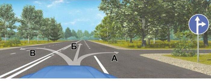 Вам необходимо повернуть на примыкающую справа дорогу. Ваши действия?