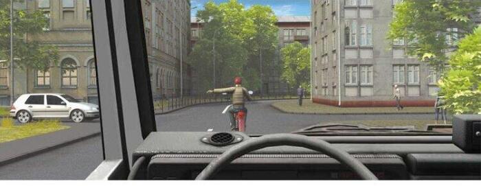 Согнутая в локте рука водителя автомобиля является сигналом, информирующим Вас о его намерении: