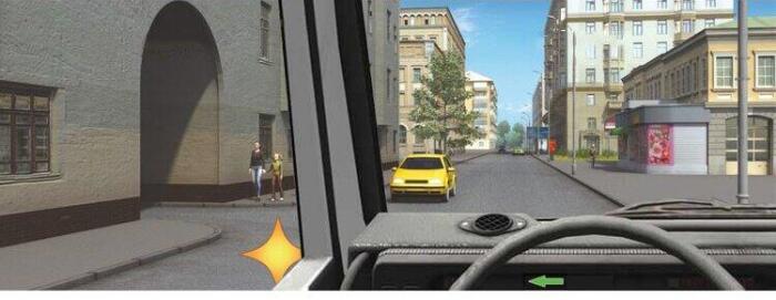 Встречному автомобилю и пешеходам