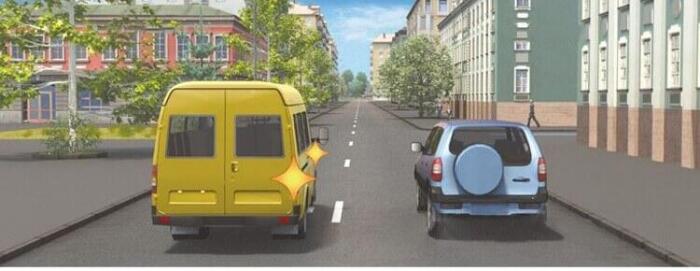 Водитель маломестного автобуса, выполняющий перестроение на правую полосу, в данной ситуации: