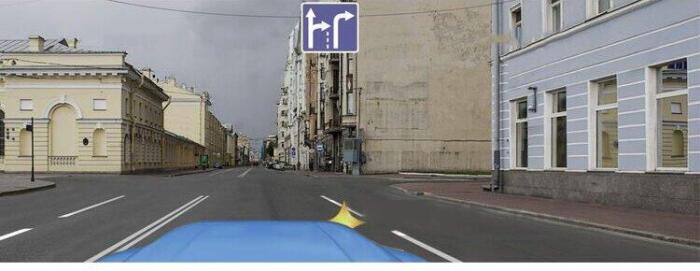 Продолжить движение по второй полосе до перекрёстка, затем повернуть