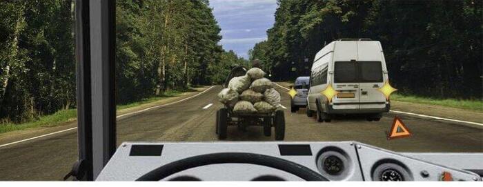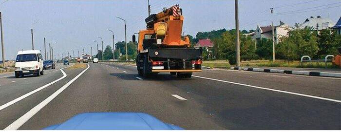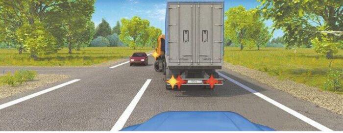 Продолжить движение только после того, как грузовой автомобиль освободит полосу движения