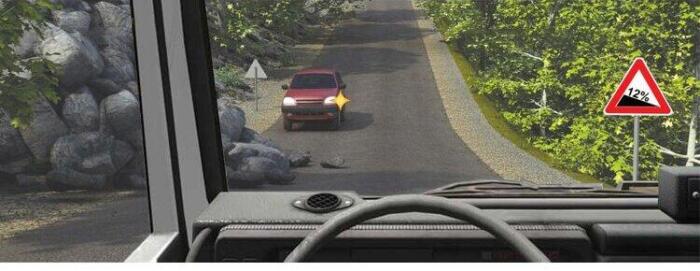 Грузовой автомобиль, так как препятствие находится на полосе движения легкового автомобиля