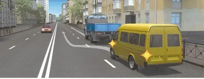 Какой маневр намеревается выполнить водитель маломестного автобуса?